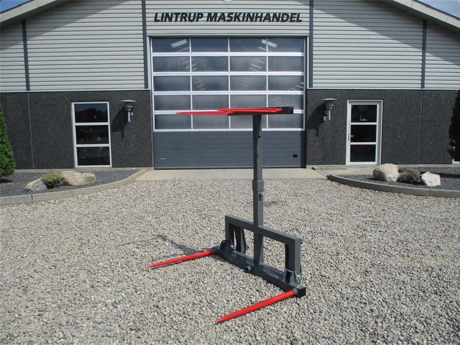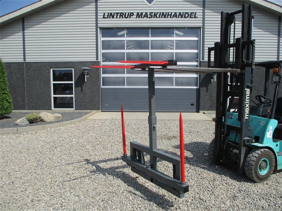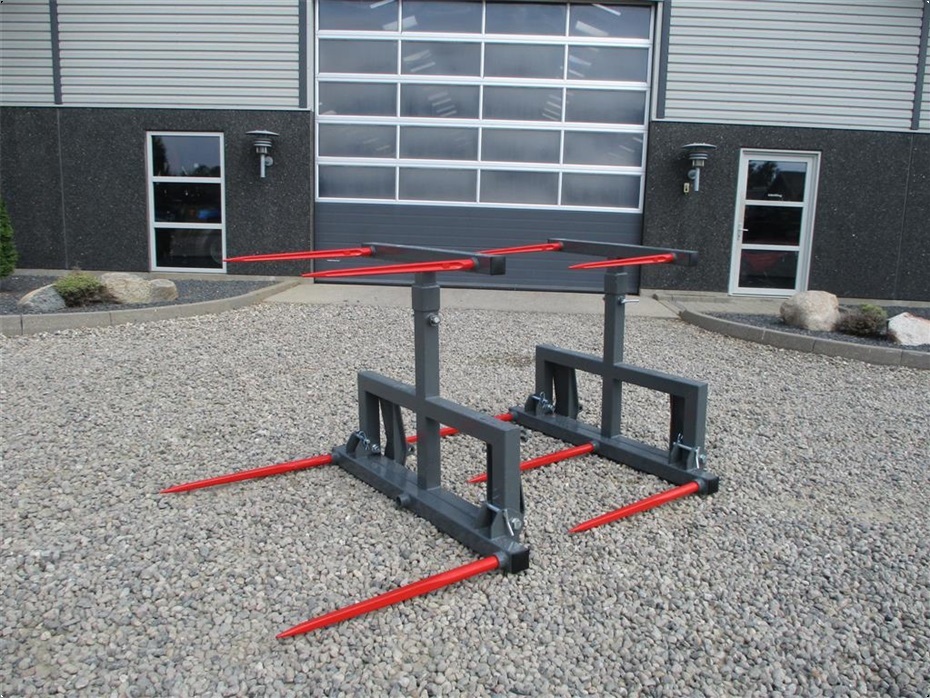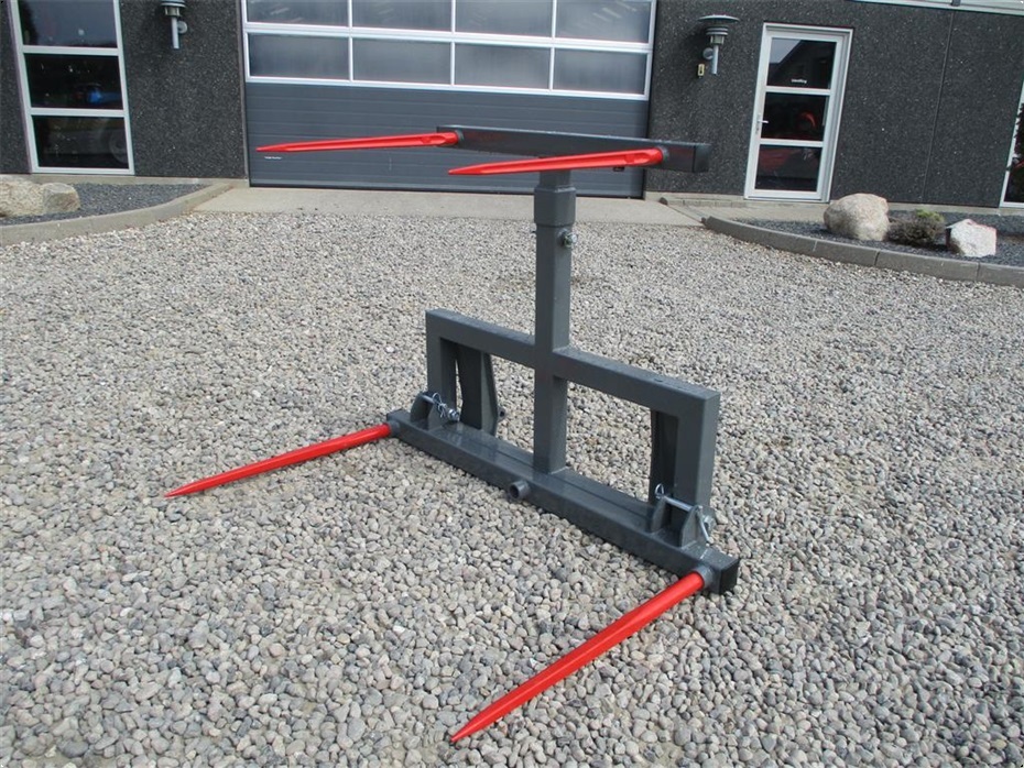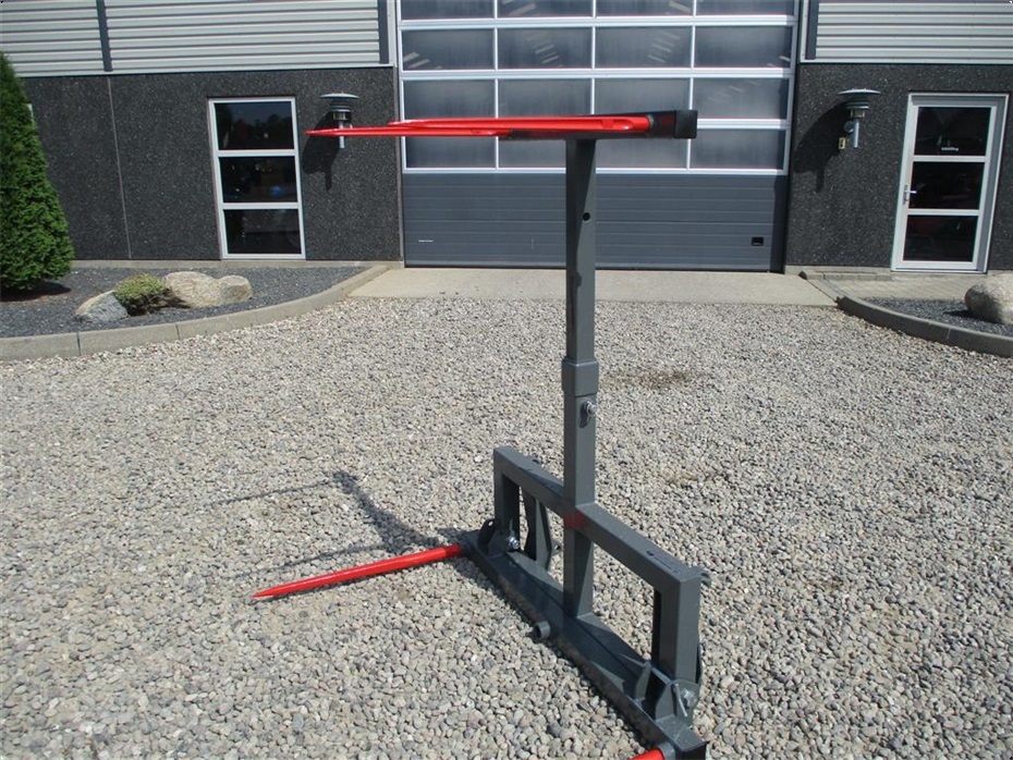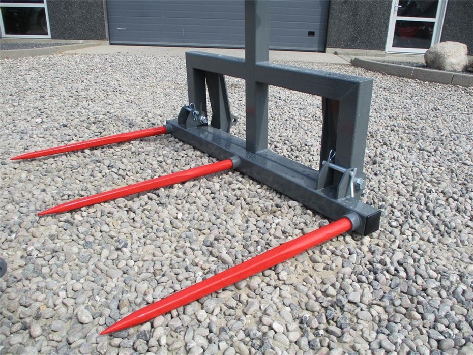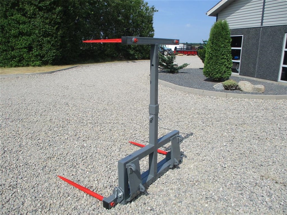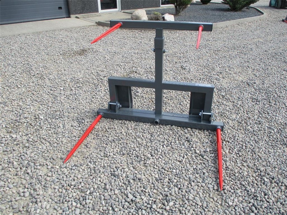 Halmspyd / Storballe-greb m.2 tænder opklappelig model. Hele under bjælken kan klappes op, så den er lovlig at køre med på landevejen. der er svejset bøsning i underbjælken til 3die tand. Tanden kan købes med til en merpris af 500 kr. Der medfølger overbygning, så den kan flytte 2 baller og der er 2 korte tænder monteret til at styre balle nr 2. den medfølger i prisen. Den har Euro beslag.