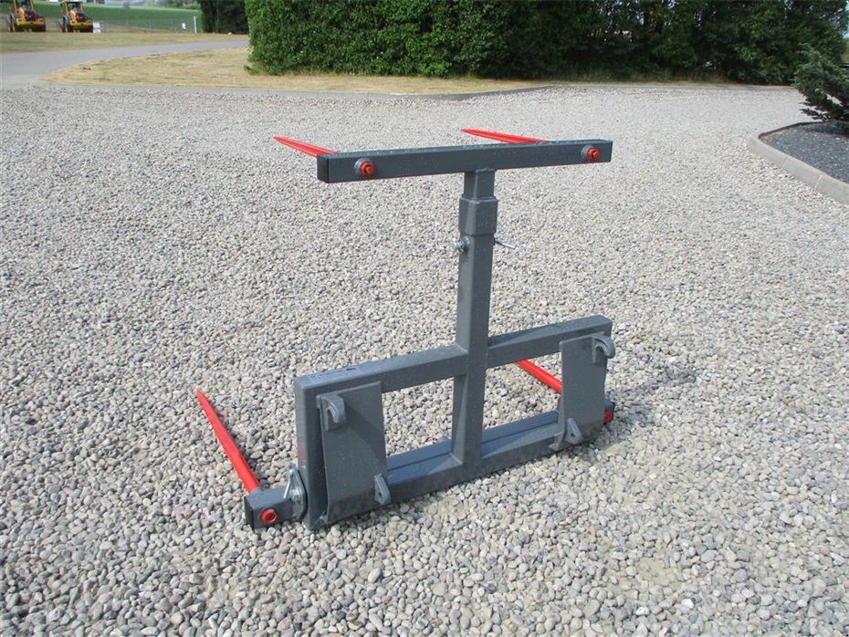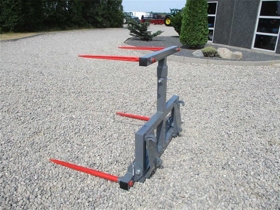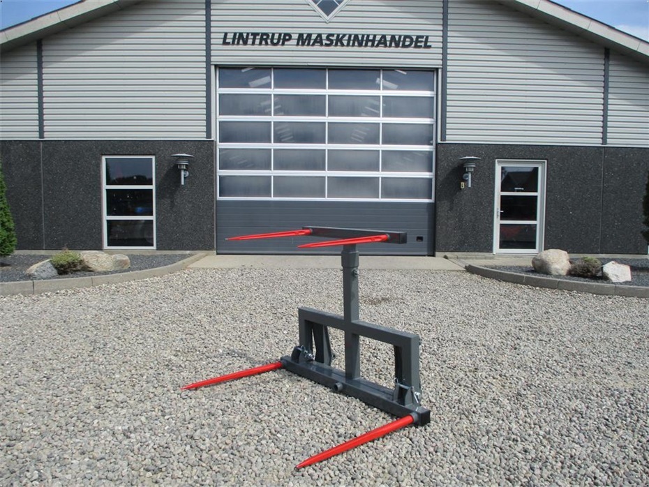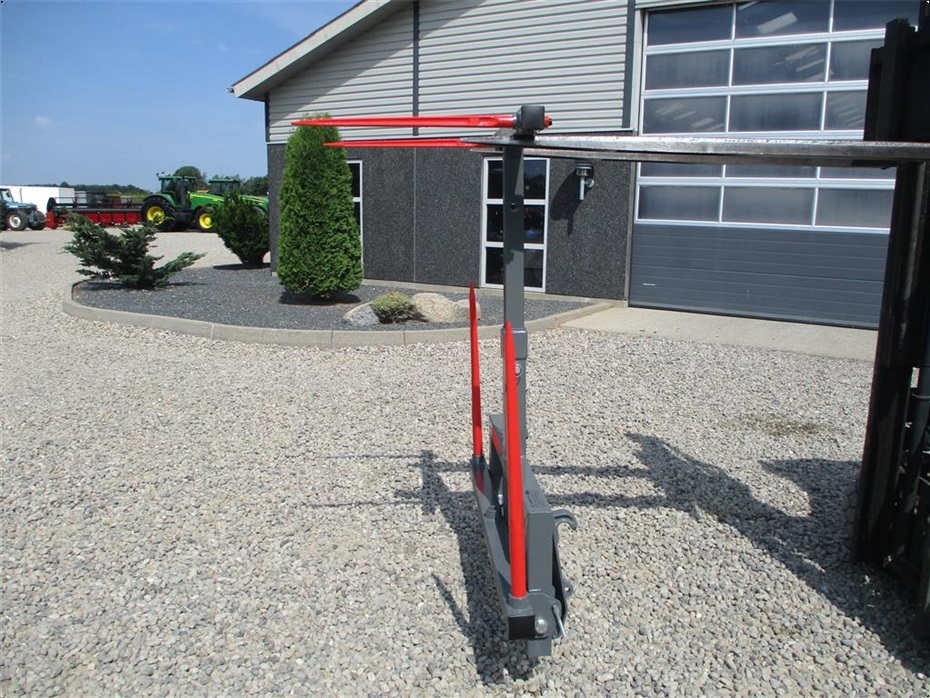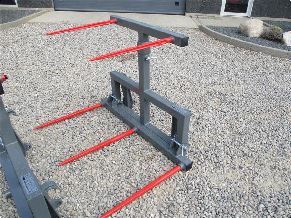 Halmspyd / Storballe-greb m.2 tænder opklappelig model. Hele under bjælken kan klappes op, så den er lovlig at køre med på landevejen. der er svejset bøsning i underbjælken til 3die tand. Tanden kan købes med til en merpris af 500 kr. Der medfølger overbygning, så den kan flytte 2 baller og der er 2 korte tænder monteret til at styre balle nr 2. den medfølger i prisen. Den har Euro beslag.