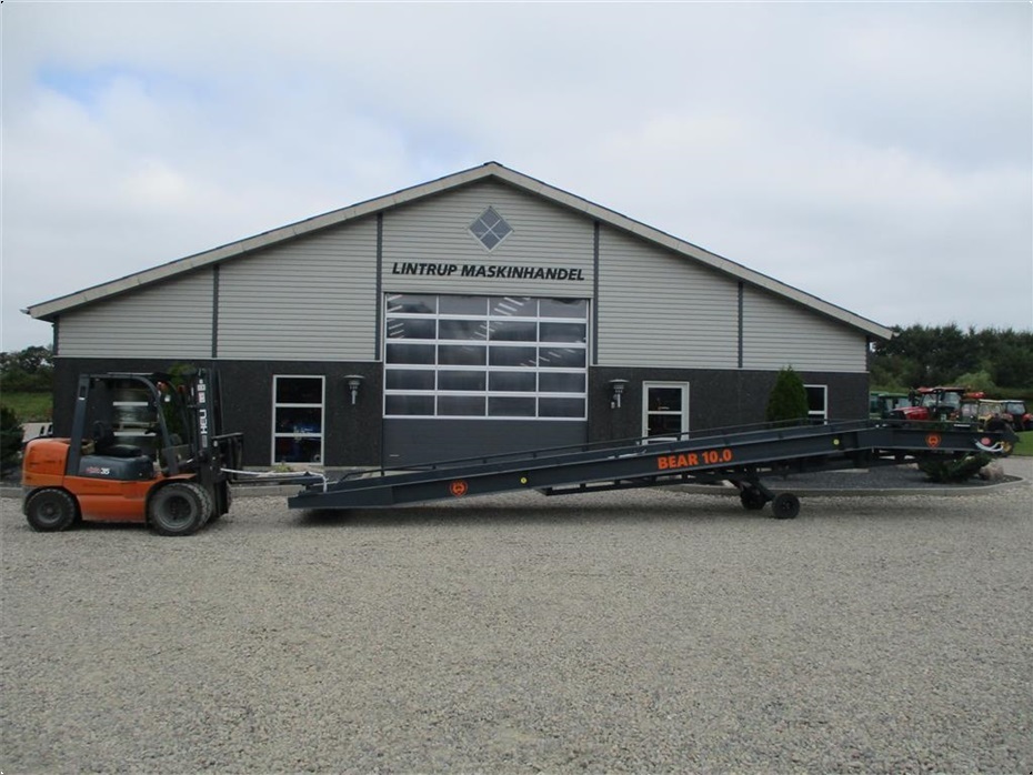 BEAR 10.0 læsse rampe. Den har en load capacity på 10.000kg. Længden er på 11.62 m. Opkørsels stykket er på 9.000m og det lige stykke er på 2.3m. Front læben er 2250mm bred og 360mm dyb. Den er 2.45m bred og arbejdes området er 2.25m bred. Den er med sikkerheds railings så man ikke køre ned af den med sin truck. Arbejdshøjen er mellem 800m og 1490mm og højden justeres på rampen hydraulisk med håndpumpe. Den har gaffel lomme så man kan flytte den med sin gaffeltruck. På siderne er der sikkerheds kæder, så den ikke køre væk fra containeren eller lastbilen, når man bruger den. Den er i farven antracit-grå Ral 7016. Den kan også lejes for en periode, også med forkøbsret, ring 74855292 og forhør nærmere om dette.