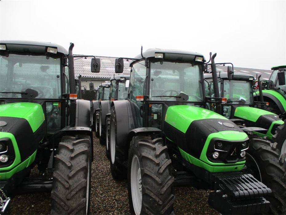 SÆLGES KUN TIL EKSPORT! IKKE TIL SALG I DANMARK. ONLY FOR EKSPORT: We sell brand new Deutz-Fahr AGROFARM 115G DT 4wd tractors to most of the world, however they cannot be sold for use in EU markets. We have them in stock with the following specifications. 340/85R28 and 420/85R38 tire mounting and front fenders on. Full front weights on. In the back there are 3 double-acting remote outlets, and a hydraulic carriage brake valve and fork lift. It has air conditioning inside the cabin. The gearbox is 40 km/h 5 speed gearbox 30F+30R, electrohydraulicHI-LO, mechanical reverse gear and it has crawler gear.We live in Denmark only 78km from the Danish-German border crossing in Flensburg and only 38km from Billund Airport - BLL. You are very welcome to come and visit us, then you can see the machine physically for yourself. If you wish, we will be happy to send a lot of pictures and video of it on Wats-App or email. Just contact us on wats-app number +45-40785296 or email fmj@limas.dkSPECKS::AGROFARM 115 G DT E24 cylinder Turbocharged Intercoolerengine with 4000 cm³ capacity.Max. power (2000/25/CE): 110 HP/81 kW100 % biodiesel fuel. Liquid/oilcooled engine. Engine/transmissionoil cooler. Engine stop with start key.Fuel tank capacity: 150 l.Hydrostatically operated dry disc clutch.Electrohydraulically operated multi-discoil-immersed PTO clutch.Electroydraulic front and reardifferential lock. Meccanically operated4WD engagement. Hydrostatic steeringwith independent pump and doublesteering cylinder. Lifting capacity: 4800kg. Lateral gearleversPowertrain standard sealingall 4 wheels with oil-immersed disc brakeswithout separate brake valveDust cover protection screen for radiatorPre-heating systemVertical exhaust pipe on cab post8" air filter with dust ejectorWithout air cleaner extensionELECTRONIC engine managementBattery: 12V - 100Ah - 1000A (EN) / 650A(IEC) / 560A (DIN)Front headlights for right-hand trafficWithout front work lights on indicatorslightEngine (not for EU markets)Open centre hydraulic system with constantpump (56 l/min)Without front linkageThree-point linkage with fixed upper andlower linksMechanical rear liftMechanical right tie rod and stabilizersTelescopic stabilizersTilting and telescopic steering columnSeat (FABRIC) (narrow mechanicalsuspension, adjustable seat position,document holder, upper backrest extension)Telescopic external mirrors4 pillars original soundproofed Cab,ventilation and heating system, 2 widedoors, front and rear opening windscreen,tinted glass, 2 front + 2 rear worklights, rear exit for cables,pre-arrangement for 2 rotary beacons,ambience lights, parcel trayDigital display: working hours, drivingspeed, PTO speed, covered distanceWithout FOPS protectionWITHOUT CAB FILTERSRemovable PTO shaftWithout ground speed PTORear PTO: 540-1000Without specializationStandard specsEnglish OECD platesWarning platesTransmission 40 km/h5 speed gearbox 30F+30R, electrohydraulicHI-LORear mudguard extensionsTyres Brand supplied by FactoryAQ029 Cab with standard roof, AIRCONDITIONING, rear wiper, suncurtain (without radiopre-arrangement)GP208 3 rear distributors with flowregulator and quick couplers(KO + Detend + Float)RF526 Tyres: 340/85 R28 (13.6 R28)front, 420/85 R38 (16.9 R38)rearTC026 User manual VB001 Battery isolator switchVF014 Rotary beaconWE003 Front steering mudguardsYA107 Front weight frame (20 kg) withhitch + 8 front weights (320kg). Total 340 kgYM135 Swinging drawbar cat."A" + PTOprotection