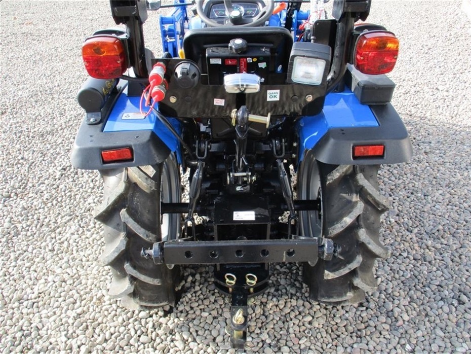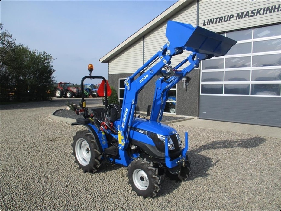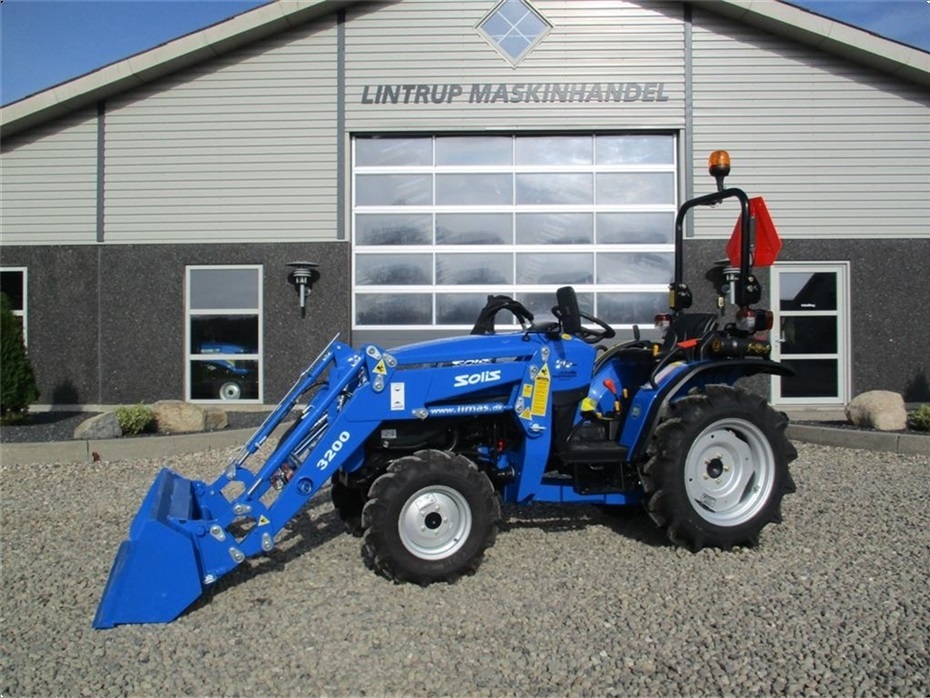 Kvalitets traktor, Solis 26hk med 3cyl Mitsubishi diesel motor. Der er monteret en Solis 3200 frontlæsser på den med J-stik og parrallelføring samt solis hurtigskift. Den har Servo-power styrring og en egenvægt på 1055kg. Den har Kategori-1 lift i bag og kan løfte 600kg, der er justerbare side stabilisatorer på liftarmene. Bag på er der 1 dobbeltvirkende fjernudtag og almindelig gaffeltræk som er svingbart og 540,540E &1000 PTO omd. Dens top hastighed er 17,05kmt og kun 1,53kmt ved 2700rpm i det lavest gear. Diff spærre. Så det er en traktor som er perfekt til brug på planteskoler, hos anlægsgartnere, rideskoler mindre landbrug og andre steder. 12v lys anlæg, arbejdslys og anhængerstik. E-godkendt styrtbøje og traktoren kan selvfølgelig leveres synet og indregistreret med nummerplade hvis det ønskes.Den har 6.00-12 og 8,3-20 hjul på med traktor mønster, den kan også leveres med Turf dæk på til græsplæner og golfbaner for en lille merpris. Den har Mitsubishi motor i og en helt rigtig mini traktor med det hele. Her kan du få en fabriksny kvalitets traktor som er fabrikeret i Indien og lavet af nogen gode kvalitets komponenter. Det er en mekanisk traktor, hvor drift sikkerheden og lave maskine omkostninger er sat i højsædet. Vi kan hjælpe med en meget attraktiv finansiering af din nye traktor og vi tager meget gerne dine gamle traktor i bytte. Køb-Salg-Bytte ring 74855292