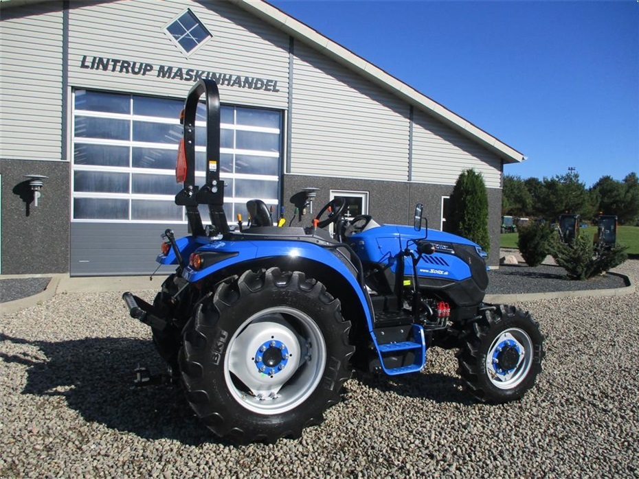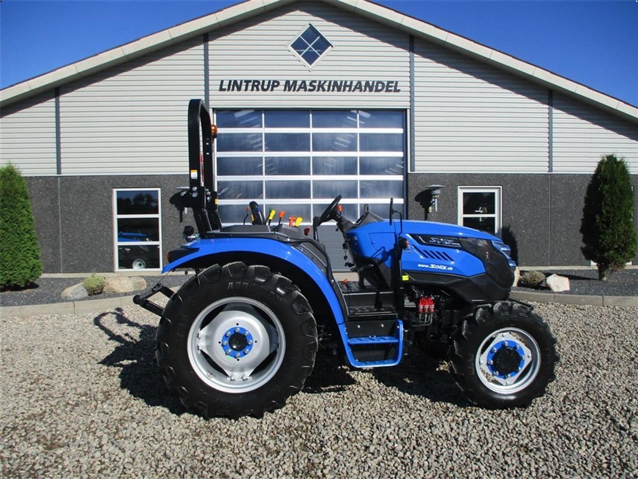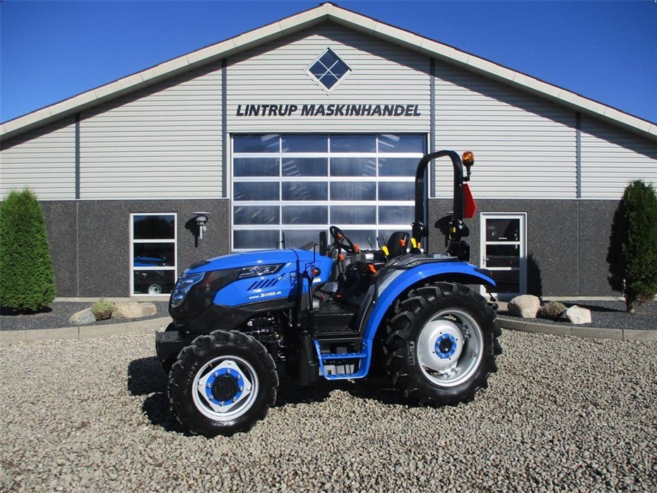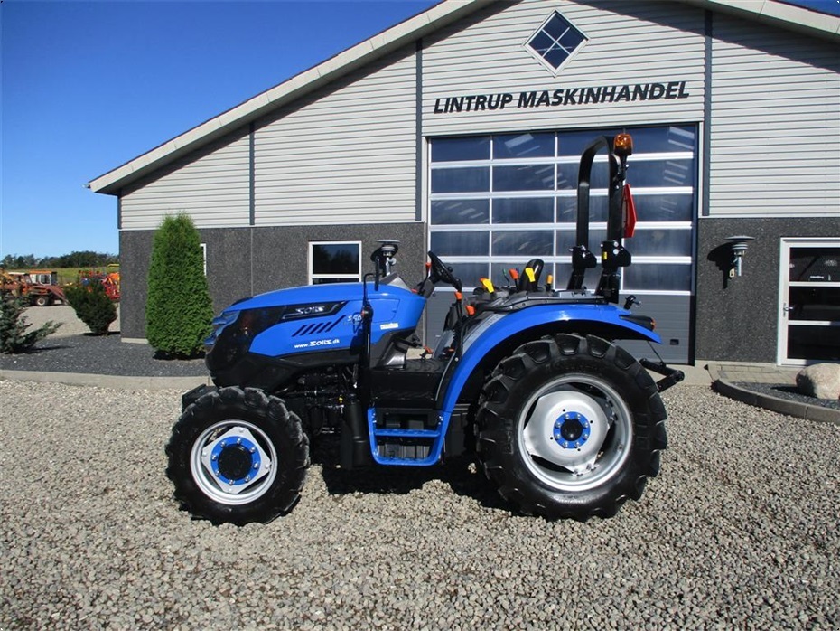 Solis 50 HK traktor med 3 cylindret stage V diesel motor. Den har en egenvægt på 2870kg og kan løfte 2500kg i liften i bag, og der er justerbare side stabilisatorer på liftarmene. Bag på er der 3 dobbeltvirkende fjernudtag og almindelig gaffeltræk som er svingbart. PTOen kan 540omd og er mekanisk. Den har Servo-power styring. Der er olie-badet bremser på, så de har minimal vedligeholdelse. Dens tophastighed er 30 kmt og kun 1,3 kmt ved 2100rpm i det lavest gear. Der ligger en 12/12 gearkasse i med mekanisk vendegear. Så det er en traktor som er perfekt til brug på planteskoler, rideskoler mindre landbrug og andre steder. 12v lys anlæg, arbejdslys og anhængerstik. E-godkendt styrtbøje og traktoren kan selvfølgelig leveres indregistret med nummerplade hvis det ønskes. Her kan du få en fabriksny kvalitets traktor som er fabrikeret i Indien og lavet af nogen gode kendte kvalitets komponenter. Det er en mekanisk kvalitets traktor, hvor driftssikkerheden og lave maskine omkostninger er sat i højsædet. Den kan også købes med en original fuldhydraulisk frontlæsser med parallel styring, eurofæste og J-stik styring på traktoren for en merpris på 38.000DKK inklusiv montering. Frontlæsseren er i traktorens farve. Vi kan hjælpe med en meget attraktiv finansiering af din nye traktor og vi tager meget gerne dine gamle traktor i bytte. Du kan også leje den for en periode, også med forkøbsret. Køb-Salg-Bytte-Udlejning ring 74855292