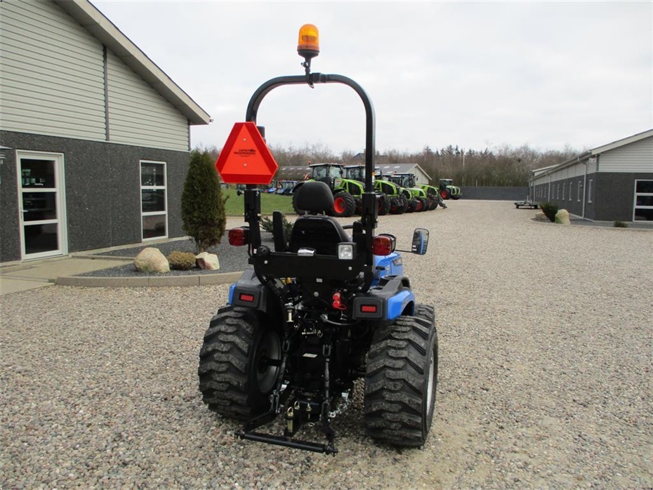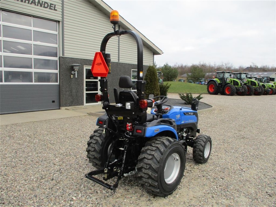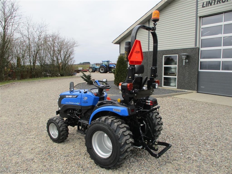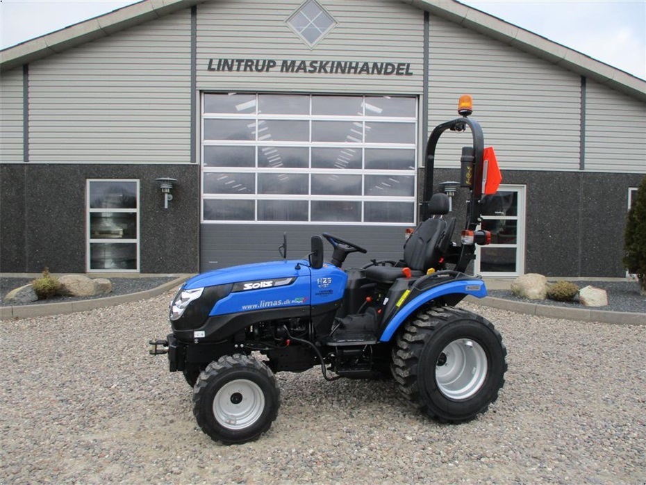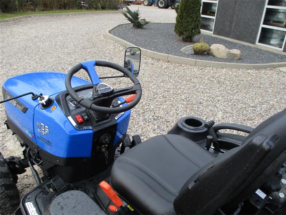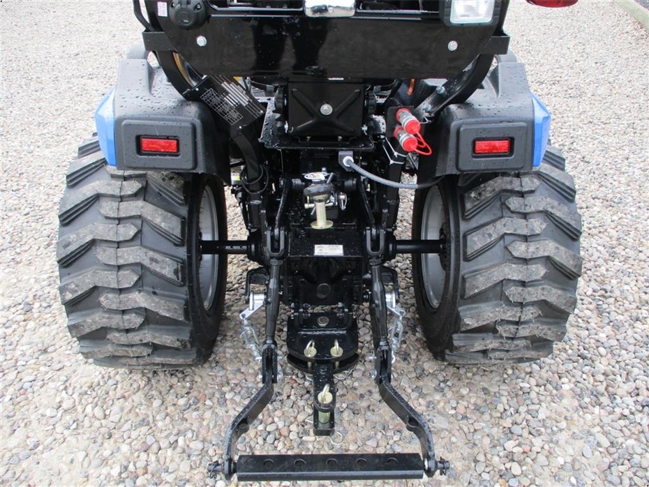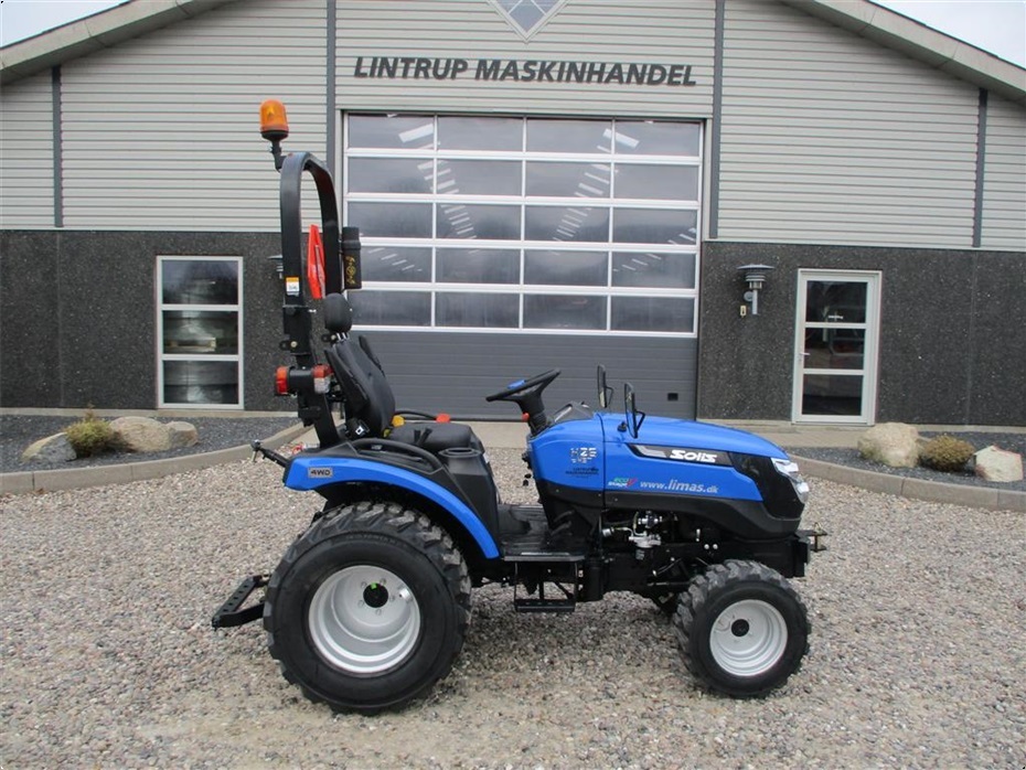 Kvalitets minitraktor fra Solis med 26 hk og 3 cylindre Mitsubishi dieselmotor. Den har en 4wd foraksel med servostyring og en egenvægt på 1055kg. I bag er der en CAT I-N lift med justerbare sidestabilisatorer på liftarmene samt løftekapacitet på 600 kg, 1 dobbeltvirkende fjernudtag, svingbart gaffeltræk og 540 omd. PTO. Der er også PTO midt på traktoren der kører 2100 omd. Bagakslen er med differentialespær og oliebadet bremser som kræver minimal vedligeholdelse. Gearkassen er en Hydrostat gearkasse med cruise control. Dens tophastighed er fra 17,4 km/t til 20 km/t ved 2700 omd. alt efter hvilken dækmontering der vælges. El-anlægget er 12 volts anlæg med kørelys, arbejdslys og 7-polet anhængerstik. Standard dæk monteringen er 6,50/80-12 i for og i bag er der 280/70R18. Der er mulighed for at vælge imellem Turf dæk (græsdæk) i størrelsen 13,6-16 i bag og 25/8,5-14 i for samt industri dæk i bredden 33*15,50-16,5 i bag og 23*8,50-12 i for, til en merpris. Traktoren har E-godkendt styrtbøjle og kan selvfølgelig leveres indregistreret med nummerplade hvis det ønskes. Her kan du få en fabriksny kvalitets minitraktor som er fabrikeret i Indien og lavet af nogen gode kvalitets komponenter. Det er en mekanisk traktor, hvor drift sikkerheden og lave maskinomkostninger er sat i højsædet. Så det er en traktor som er perfekt til brug på planteskoler, hos anlægsgartnere, rideskoler mindre landbrug og andre steder. Den kan monteres med en original frontlæsser på i traktorens farve, med parallelføring, solis-hurtigskifte, 3die funktion og joy-stikstyring af læsseren.
