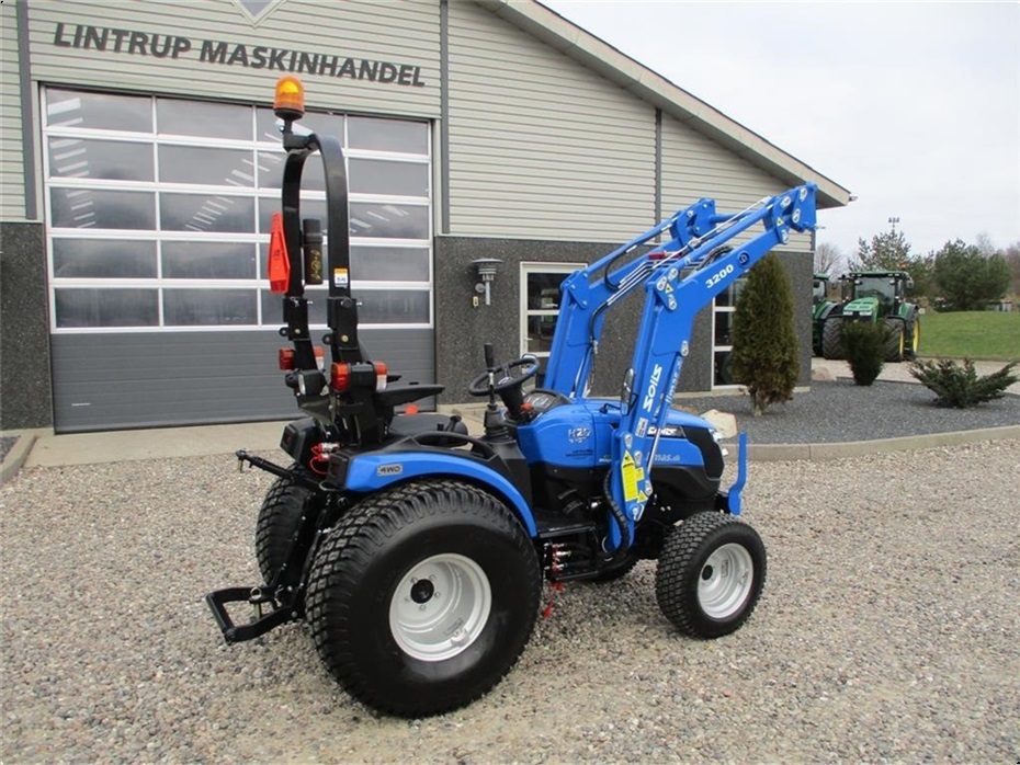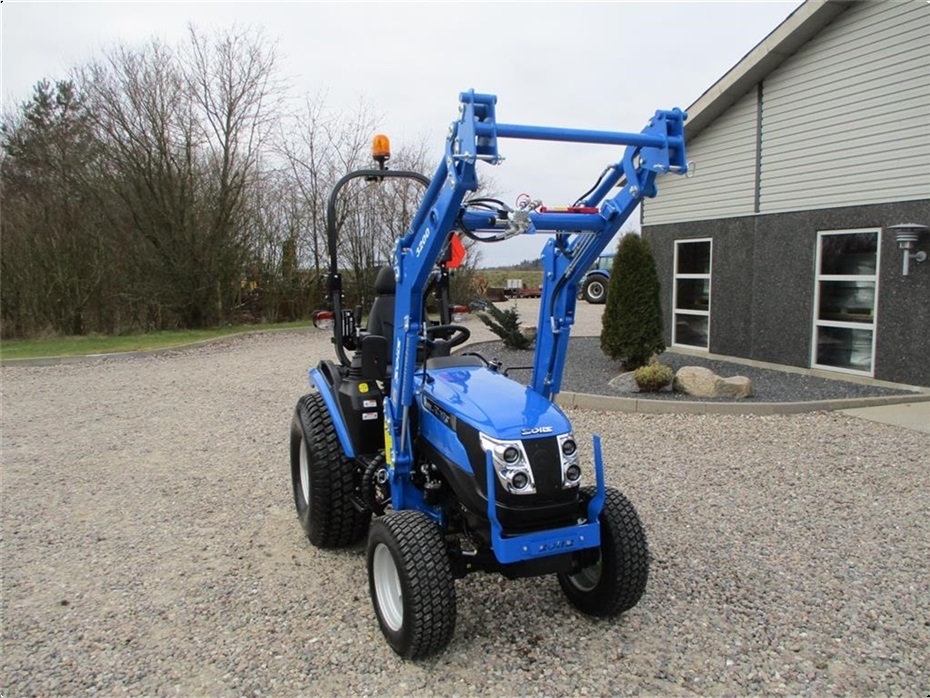 Kvalitets traktor, Solis 26 HST med 3cyl Mitsubishi diesel motor. Der er monteret en Solis 3200 frontlæsser på den med J-stik og parallel føring samt solis/euro hurtigskift. Den har Servo-power styrring og en egenvægt på 1055kg. Den har Kategori-1 lift i bag og kan løfte 600kg, der er justerbare side stabilisatorer på liftarmene. Bag på er der 1 dobbeltvirkende fjernudtag og almindelig gaffeltræk som er svingbart og 540 omdr. PTO. Der er også PTO midt på traktoren der kører 2100 omdr. Bagakslen er med differentialespær og oliebadet bremser som kræver minimal vedligeholdelse. Gearkassen er en Hydrostat gearkasse med cruise control. Dens tophastighed er fra 17,4 km/t til 20 km/t ved 2700 omdr. alt efter hvilken dækmontering der vælges. El-anlægget er 12 volts anlæg med kørelys, arbejdslys og 7-polet anhængerstik. Standard dæk monteringen er 6,50/80-12 i for og i bag er der 280/70R18. Der er mulighed for at vælge imellem Turf dæk (græsdæk) i størrelsen 13,6-16 i bag og 25/8,5-14 i for samt industri dæk i bredden 33*15,50-16,5 i bag og 23*8,50-12 i for, til en merpris. Traktoren har E-godkendt styrtbøjle og kan selvfølgelig leveres indregistreret med nummerplade hvis det ønskes. Her kan du få en fabriksny kvalitets minitraktor som er fabrikeret i Indien og lavet af nogen gode kvalitets komponenter. Det er en mekanisk traktor, hvor drift sikkerheden og lave maskinomkostninger er sat i højsædet. Så det er en traktor som er perfekt til brug på planteskoler, hos anlægsgartnere, rideskoler mindre landbrug og andre steder.