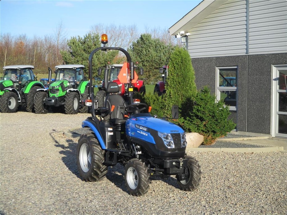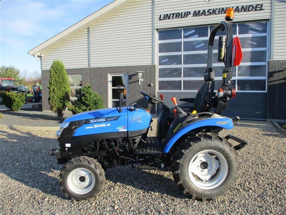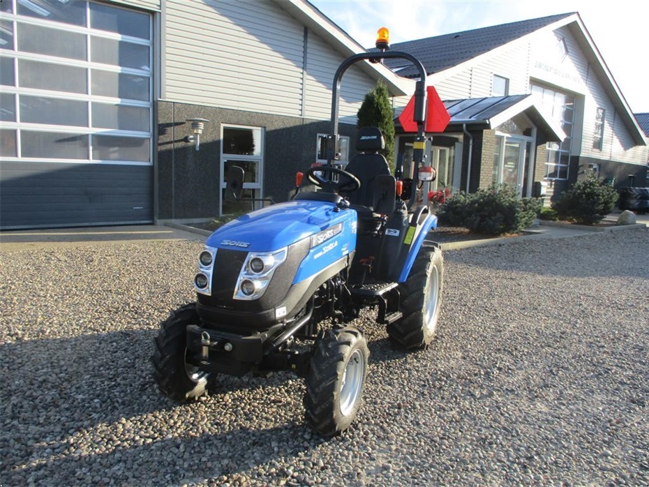 Kvalitets minitraktor fra Solis med 26 hk og 3 cylindre Mitsubishi dieselmotor. Den har en 4wd og er med servostyring. I bag er der en CAT I-N lift med justerbare sidestabilisatorer på liftarmene samt løftekapacitet på 600 kg, 1 dobbeltvirkende fjernudtag, svingbart gaffeltræk og 540 omd. PTO. Der er også PTO midt på traktoren der kører 2100 omd. Bagakslen er med differentialespær og oliebadet bremser som kræver minimal vedligeholdelse. Gearkassen er en mekanisk 9x9, og den er med mekanisk vendegear. Traktoren har E-godkendt styrtbøjle og kan selvfølgelig leveres indregistreret med nummerplade hvis det ønskes. Her kan du få en fabriksny kvalitets minitraktor som er fabrikeret i Indien og lavet af nogen gode kvalitets komponenter. Det er en mekanisk traktor, hvor drift sikkerheden og lave maskinomkostninger er sat i højsædet. Så det er en traktor som er perfekt til brug på planteskoler, hos anlægsgartnere, rideskoler mindre landbrug og andre steder. Den kan monteres med en original frontlæsser på i traktorens farve, med parallelføring, hurtigskifte, 3die funktion og joy-stikstyring af læsseren. Vi hjælpe gerne med Danmarks bedste finansiering hvis det ønskes og vi tager meget gerne dine brugte traktorer i bytte og Køb-Salg-Bytte-Udlejning, se altid over 100 brugte traktorer til salg på vores webside limas.dk
